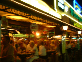 Wer Lust auf Party und Spaß hat ist hier in der Bierstrasse genau richtig. Eine Kneipe oder Bierbude reiht sich an die andere. Jede Nacht sind hier viele Urlauber unterwegs um ihr Geld in flüssiges Gold zu verwandeln. In der Nähe ist die Schinkenstaße, die für die ältere Generation interessanter ist.